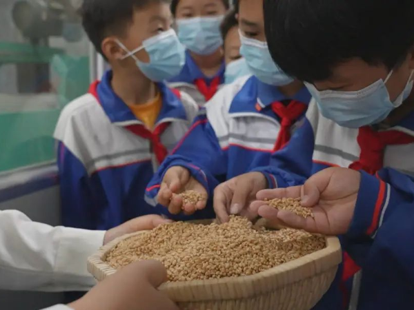Recentemente,ocondadodeChengwuorganizouaentradadeestudantesnomoinhodefarinha,observandooprocessament