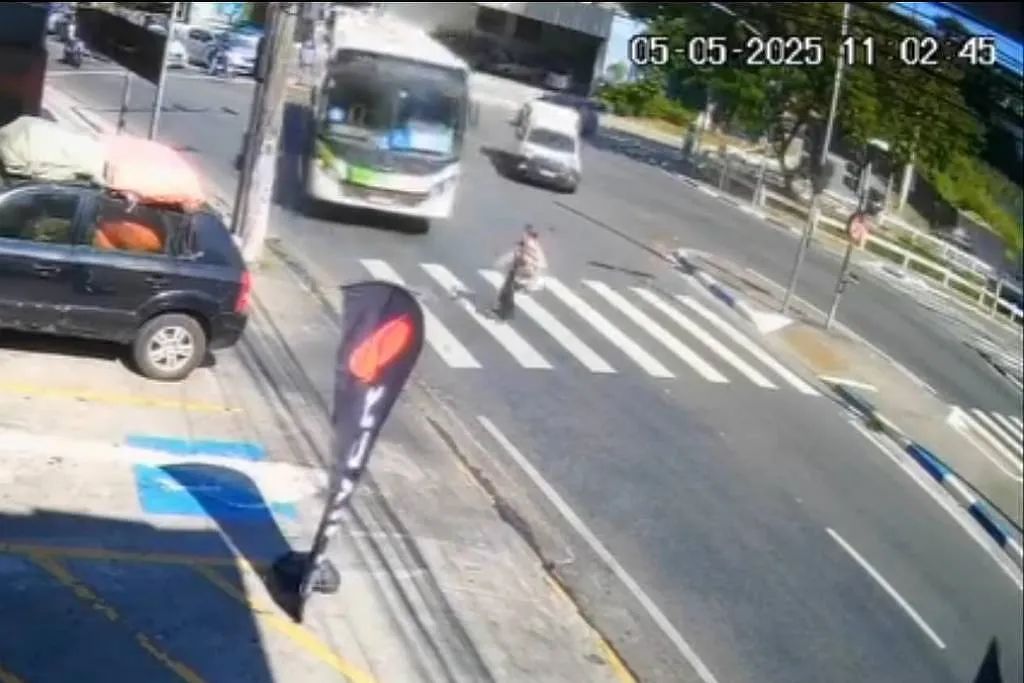 事故发生在约上午11时,地点位于Jardim Zaira区的Avenida Tiradentes与Rua Onze de Agosto交叉口。监控画面显示,当时老人手提购物袋正在过街,眼见公交车驶近,她试图加快脚步,但仍被撞倒。