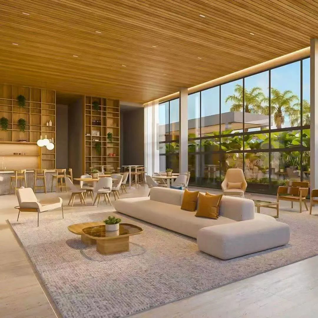 商务社交:共享办公室适合远程办公,搭配私人宴会厅。