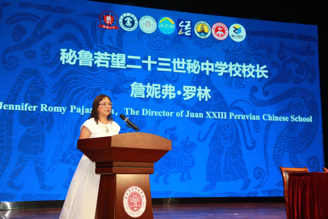 詹妮弗校长代表全体秘鲁师生向各承办单位表示衷心感谢。她说:“夏令营是深化中秘友谊的一次意义非凡的活动。2016年11月,习近平主席夫人彭丽媛教授访问我校,对我校的中国文化和汉语教学给予高度评价。2014年11月,习近平主席再次出席秘鲁APEC,我校学生的中国舞蹈和二胡演奏在秘鲁总统府的盛大晚宴上演出,赢得了习近平主席和中国代表团的高度赞赏。我们热切欢迎徐州教育团和徐州夏令营师生到访我校,我们的家长和学生也会象此次中国家庭一样热情款待中国师生。”