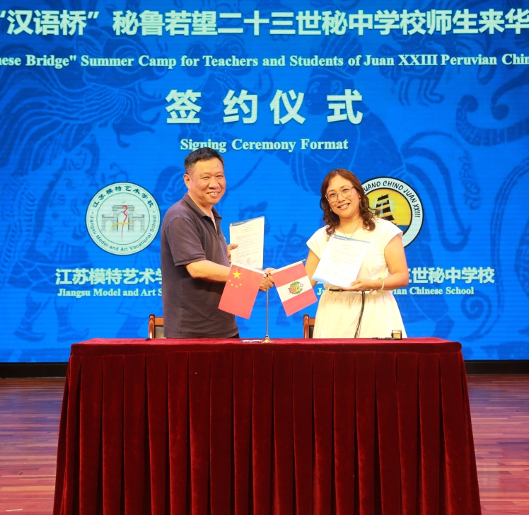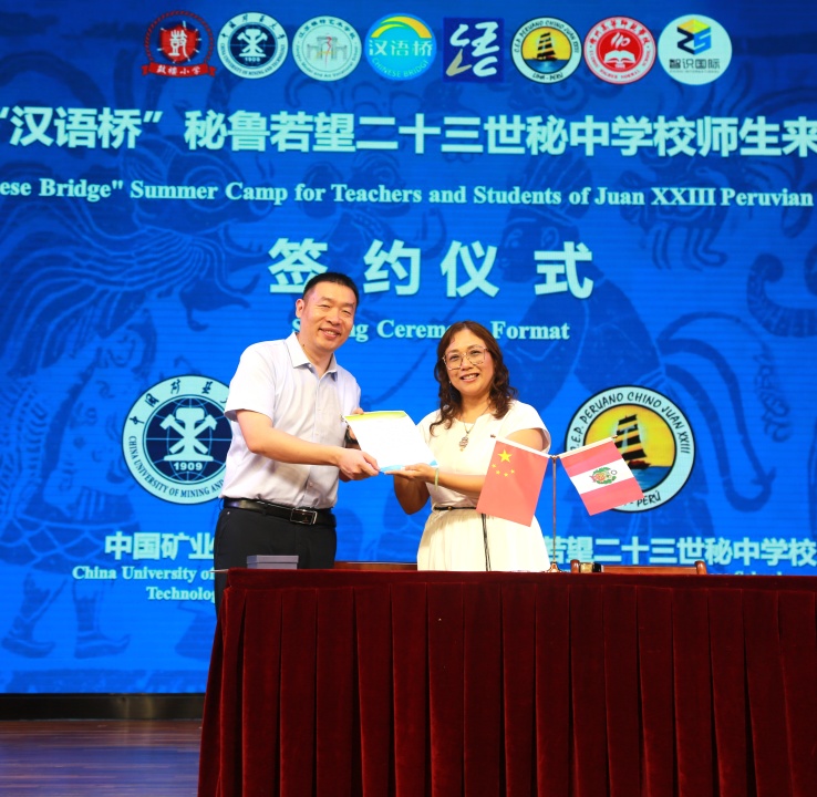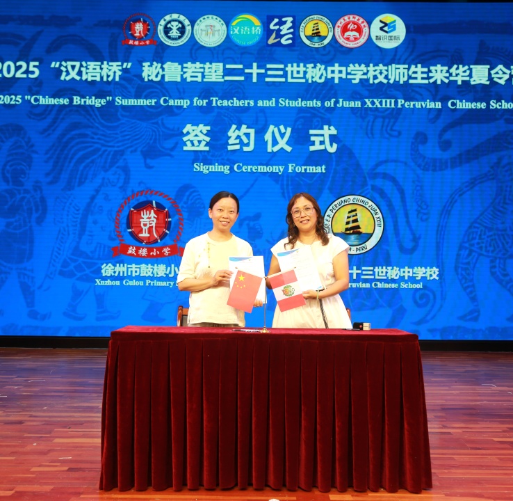 当太平洋的海风邂逅两汉大地的晨露,一场跨越山海的文化之约,于2025年6月26日-7月9日,在古彭徐州悄然绽放。由教育部中外语言交流合作中心主办、徐州高等师范学校联合徐州三所名校共同承办的秘鲁若望二十三世秘中学校师生“汉语桥”来华夏令营,让38名秘鲁师生,在楚韵汉风的浸润中,开启了一段解码中国两汉文明的奇妙旅程。徐州市教育局教师工作处处长李进强;徐州高等师范学校党委书记、校长苗苏莉;中国矿业大学国际学院副院长房坤;江苏模特艺术学校党委书记、校长李乐;徐州市鼓楼小学校长陈娟;徐州教育在线总监周燕青、智识国际总经理刘甜、若望二十三秘中学校校长詹妮弗(Jennifer Romy Pajan Lan )及夏令营全体师生共同出席了7月4日的夏令营结业典礼。营员们还参观游览了北京长城、颐和园,上海博物馆、外滩和古猗园。将东方古都的千年风韵、国际大都市的日新月异和中国师生的深情厚谊带回到了太平洋彼岸。