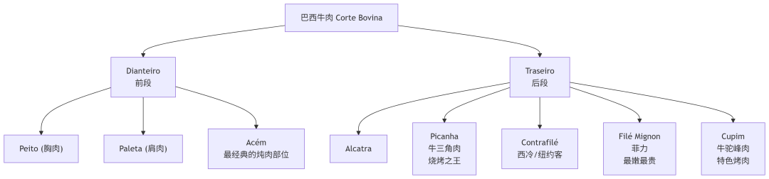巴西牛肉切割方式非常独特,有很多专有名词。