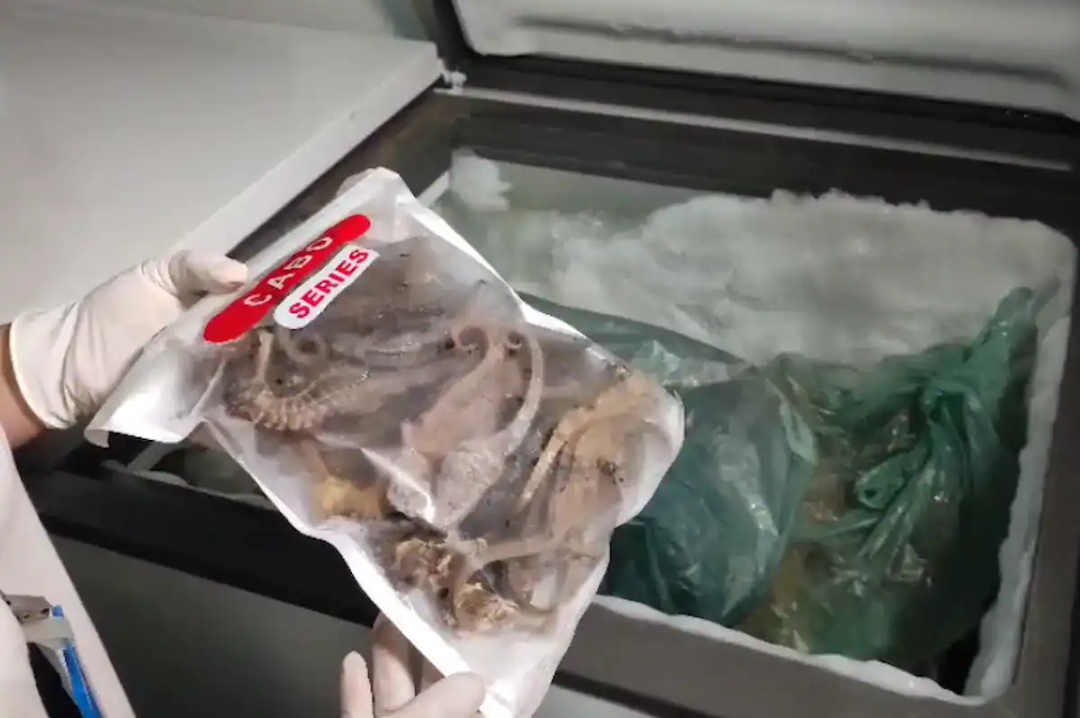 警方透露,早在两年前,当地新帕尔纳伊巴(Nova Parnaíba)社区的居民便曾投诉,称附近一处民宅经常散发出刺鼻的鱼腥味。经过持续跟踪调查,警方在本周三对该住宅进行突击搜查,结果发现81箱共约2吨非法材料,其中包括大量散落在地板上的鲨鱼鳍,以及存放在冷冻柜中的海马。