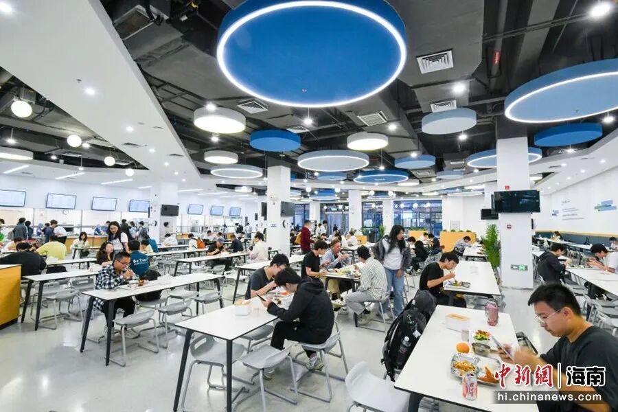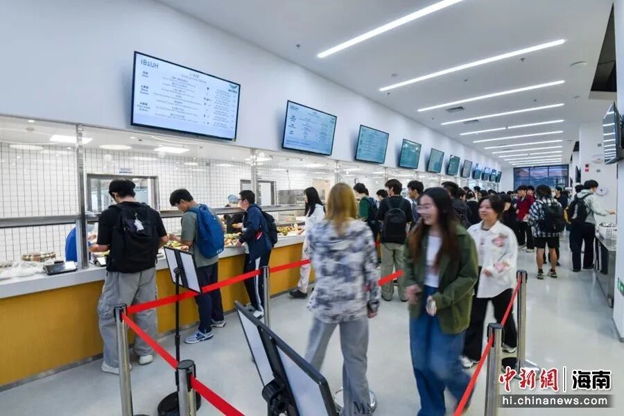 11月12日,海南洋浦,学生在食堂排队取餐。记者 骆云飞 摄