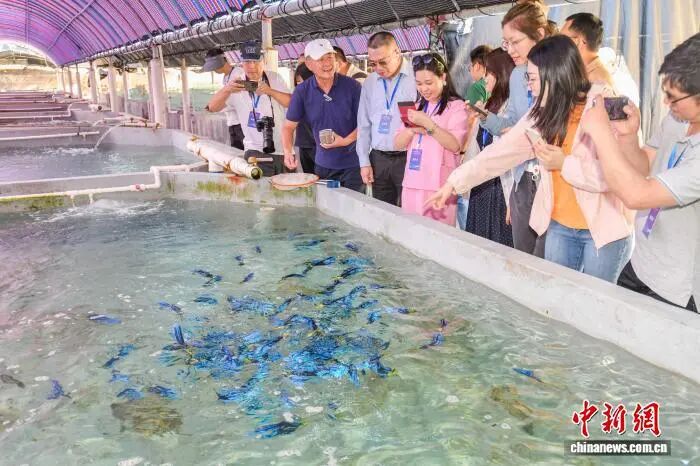 参加行走中国·2025海外华文媒体海南行活动的20家境外华媒,13日来到海南东方之星生物科技有限公司,参观洪宜展的水产养殖基地,深入了解他深耕海南海洋渔业的故事。