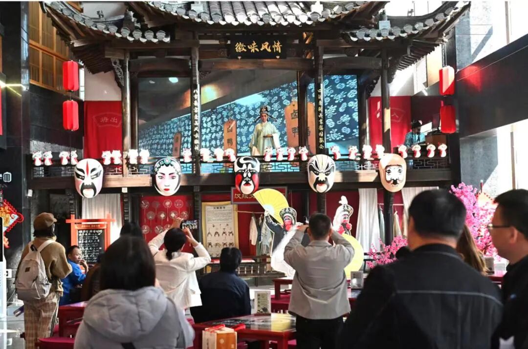 (11月15日,海外华文媒体代表在中国徽菜博物馆观看徽剧演出。中新社记者 韩苏原 摄)