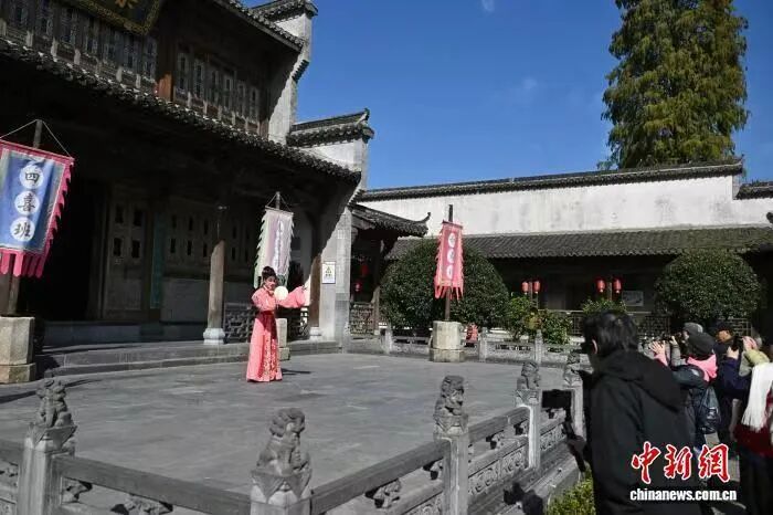 11月18日,海外华文媒体在宏村观看表演。中新社记者韩苏原 摄