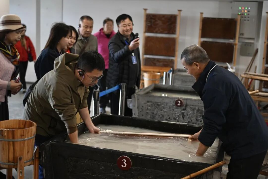 (巴西华人网讯)11月20日,2025海外华文媒体走读安徽活动走进位于宣城市泾县的中国宣纸文化园,探秘“三丈三”巨型宣纸制作技艺。