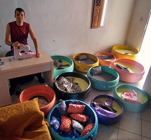中国台湾网3月19日讯 据台湾东森新闻云报道,废弃旧轮胎能做什么?住在巴西的阿玛里多(Amarildo Silva)将它们变成缤纷的宠物床,最近这些五颜六色的的作品在网络上不断被转发,网友们看了都说“好想要”。