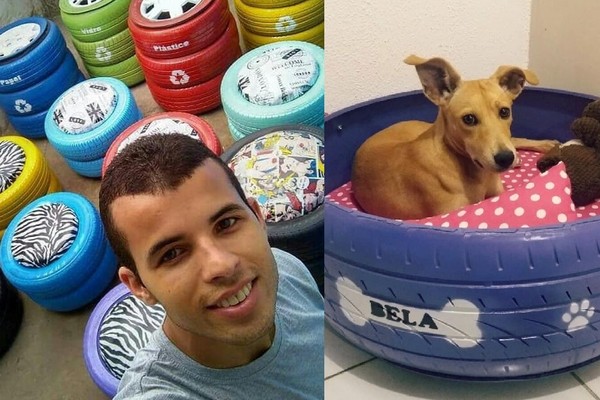 废轮胎在阿玛里多眼里可都是宝藏,经过清洗、上色,再缝制软垫、枕头,组合在一起就是一个温暖宠物床,上面还写着毛孩的名字,而且狗狗猫猫都超级喜欢。特别的是,因为轮胎是捡回来的,所以每张床的纹路、大小都有些不同,小轮胎就给猫咪或小型犬睡,有时也会捡到容纳得下大汪汪的轮胎呢!
