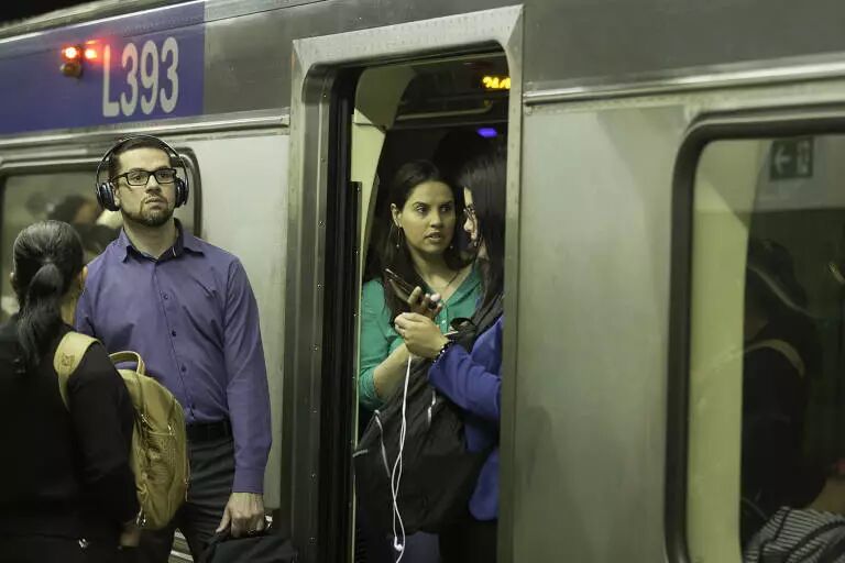 蓝线地铁中被困在地铁里的乘客