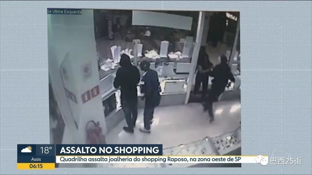 据巴西媒体报道,29号,周日晚上6:30左右,在圣保罗西区的 Raposo Shopping发生一起抢劫案。据称有8名抢匪持枪进入商场抢劫了一家珠宝店。通过店内的摄像头可以看到抢匪挟持店内员工进行抢劫的画面(点击阅读原文查看视频报道),在抢劫过程中有一人受伤。