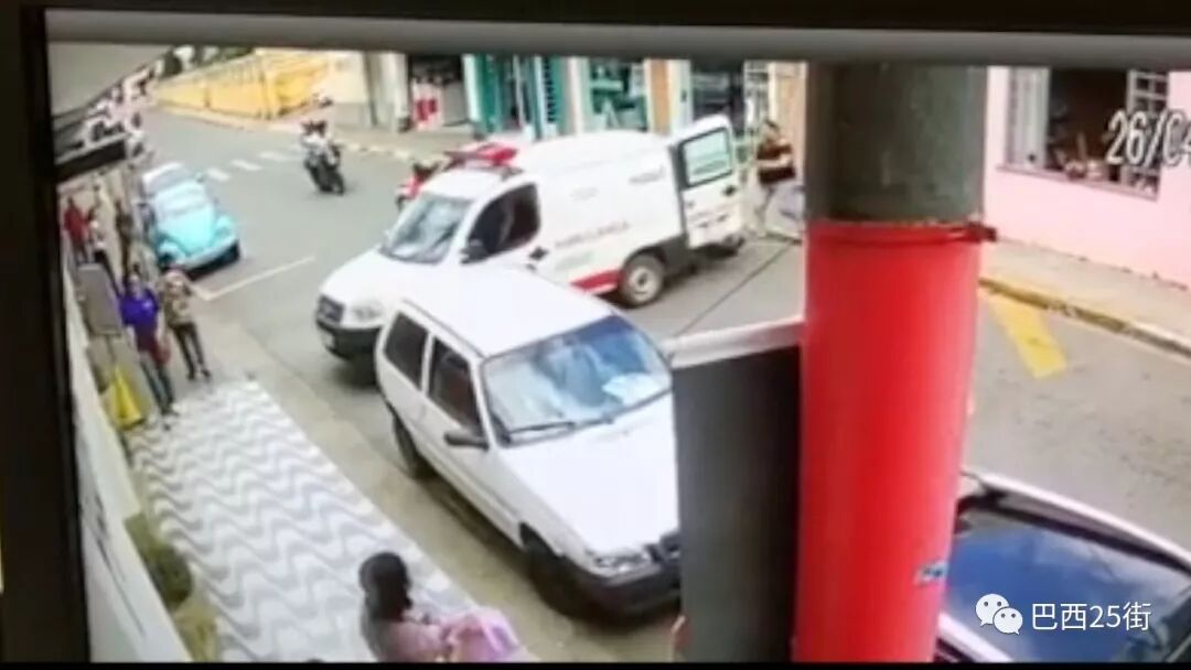 【南美侨报网讯】一名79岁的老人从一辆救护车上摔下,案件发生在周四下午在圣保罗州PIRACAIA市,一台监控摄像机拍下了当时的情况)(点击阅读原文查看视频)。当时救护车上没有司机,汽车直接从患者家的车库驶出来,后面拖着患者,救护车一直滑到路对面,撞上了人行道才停下来。市政府说,当时救护车司机忘记拉上刹车。