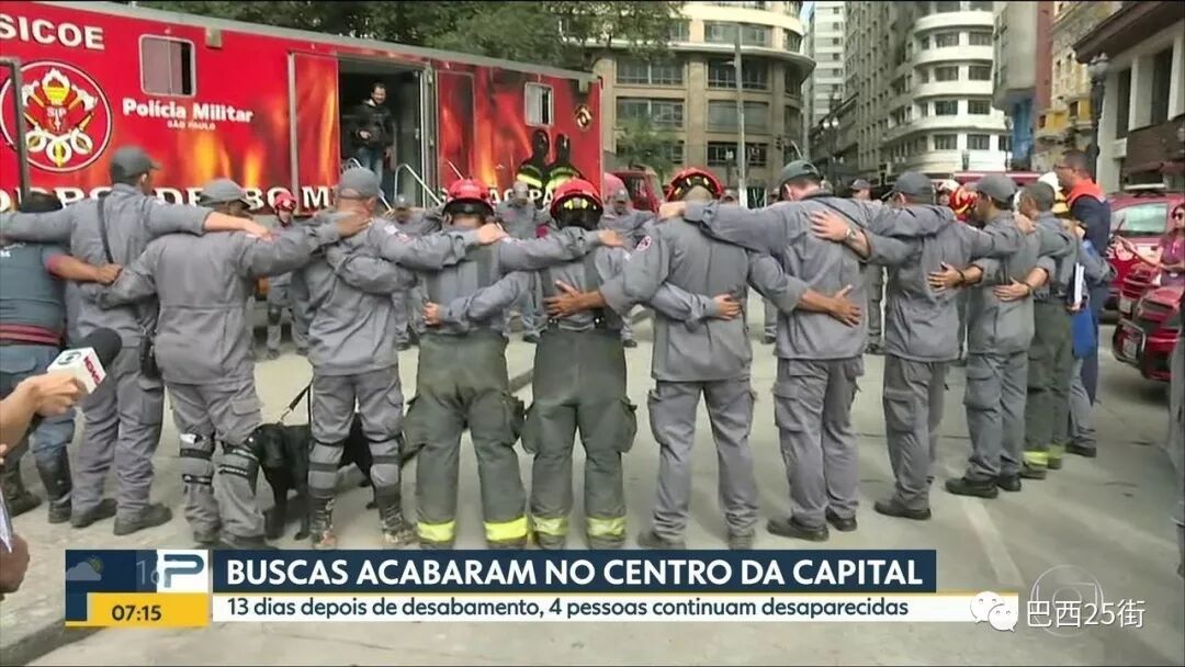 5月13日,巴西圣保罗州州长马修·弗朗科宣布结束圣保罗塌楼的搜寻工作。在13天的搜寻中,塌楼现场共发现4名遇难者遗体,还有4人失踪。