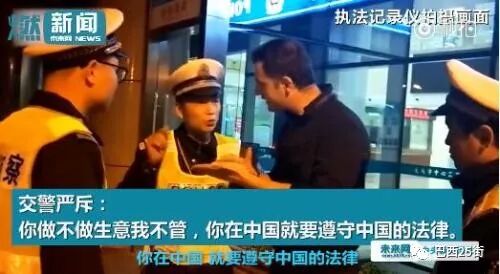 随即,浙江交警打断该名男子的耍赖,严斥道:“你做不做生意我们不管。你在中国就要遵守中国的法律。”