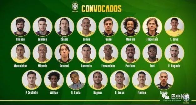 巴西队世界杯23人名单