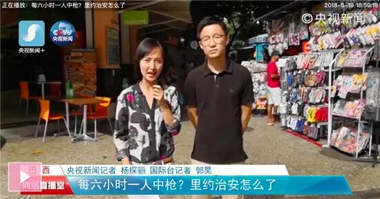 央视新闻记者杨探骊、国际台记者郭昊现场述评里约当地治安。