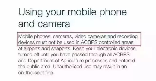 其实不止是澳大利亚,几乎所有国家海关附近都是禁止使用手机的!