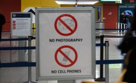 无论在哪个国家,手机、相机、摄像机以等摄录设备都不得在机场和港口的海关管制区域使用。