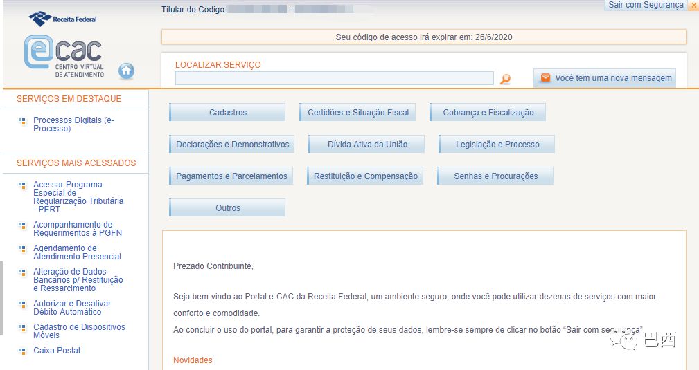 现在在巴西办理税卡,办理之后得到的就是一张纸。随着时间的推移,有时候这张纸就找不到了。所以就有小伙伴想知道如何从网上再次打印税卡。