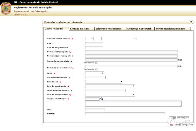 1,首先进入官网 https://servicos.dpf.gov.br/sincreWeb/,填写申请表格: