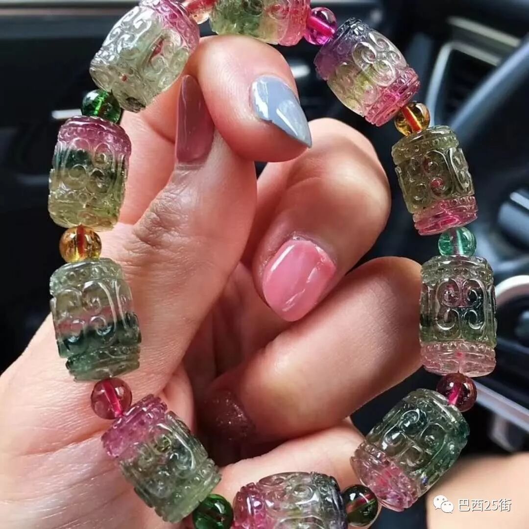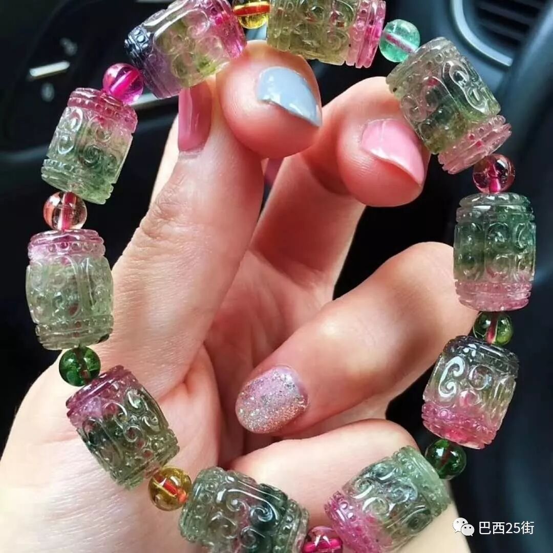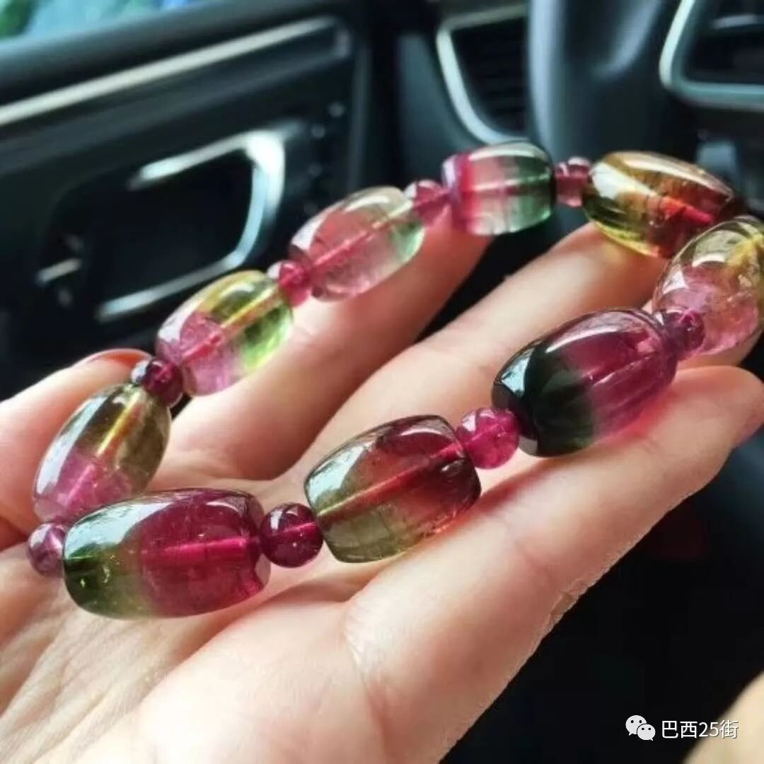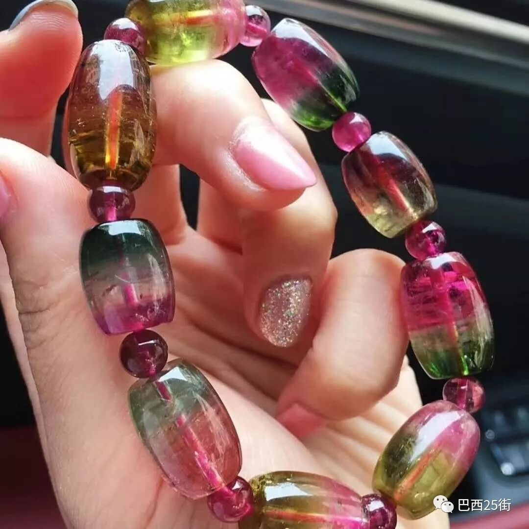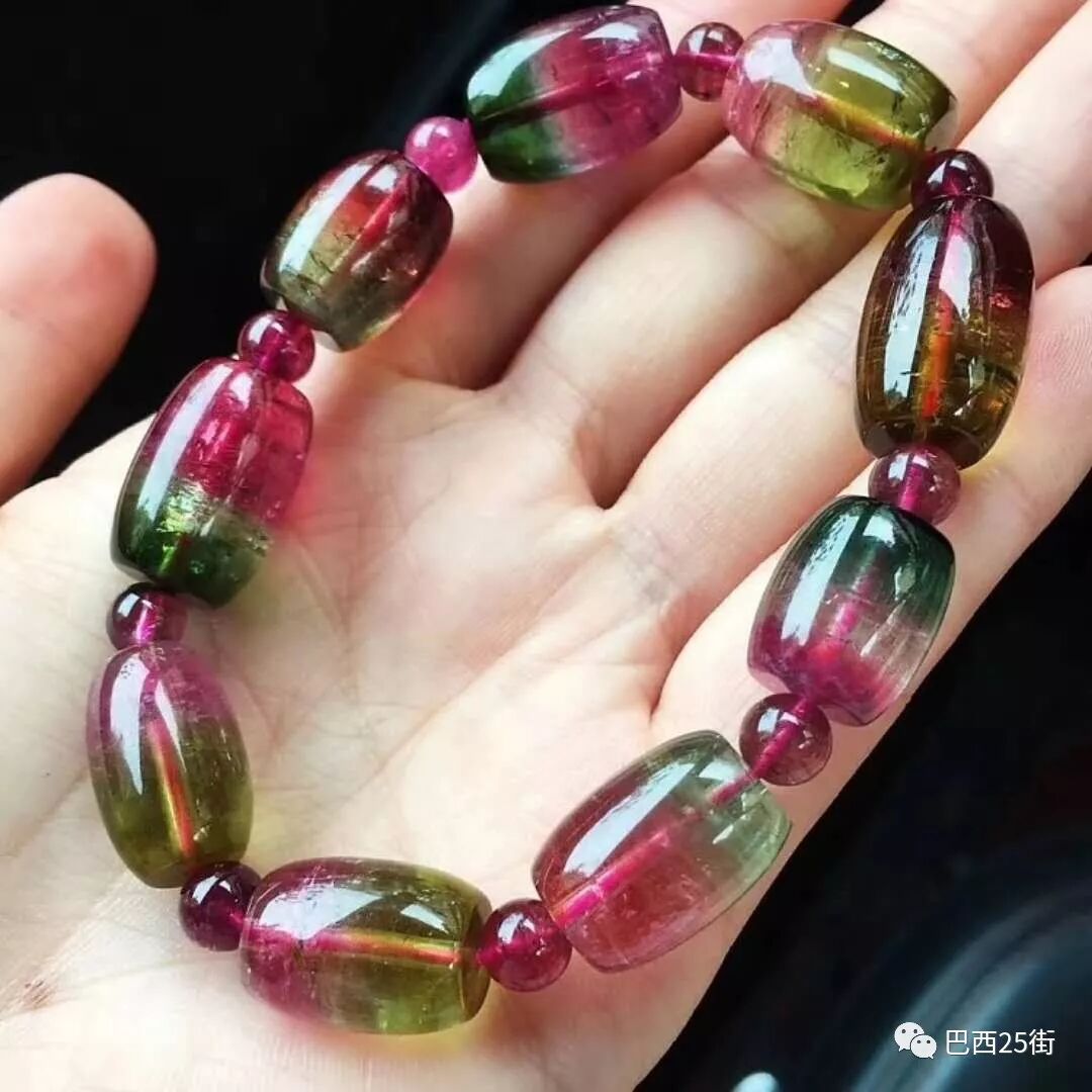 大爱,完美西瓜碧玺桶珠手链,颗颗近玻璃体,攒了很久的料子才穿成一串,遇到珍惜