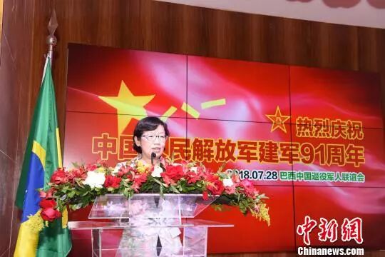 中新网圣保罗7月28日电 (记者 莫成雄)当地时间7月28日,巴西中国退伍军人联谊会在圣保罗北京饭店举行“八一”建军节晚会,热烈庆祝中国人民解放军建军91周年。中国驻圣保罗总领事陈佩洁、侨务领事张于成以及当地华人社团侨领、侨胞等200多人出席。