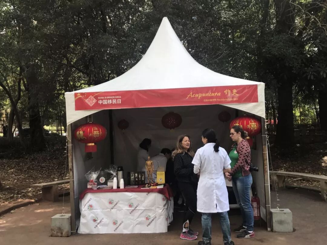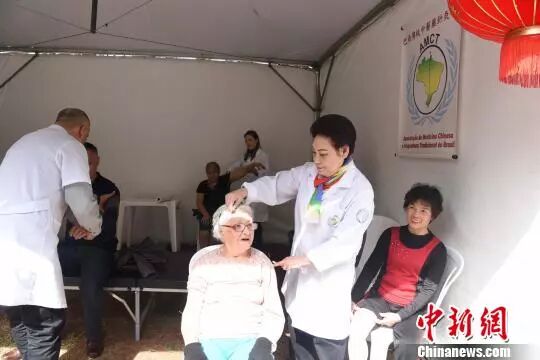 图为巴西传统中医药针灸学会会长惠青(右二)现场开展义诊。 莫成雄 摄