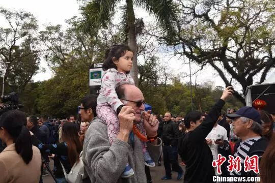 图为巴西民众带着小孩前来参加庆祝活动。 莫成雄 摄