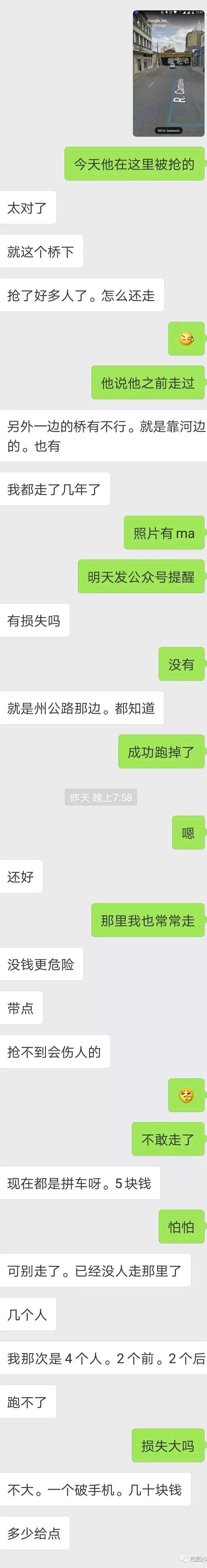 有微友反馈说很中国人在这里被抢过,建议大家以后都不要走这里了!
