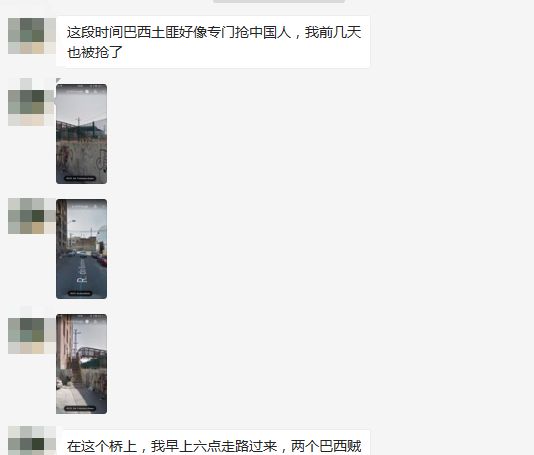 TA说: “这段时间巴西土匪好像专门抢中国人,我前几天也被抢了!”