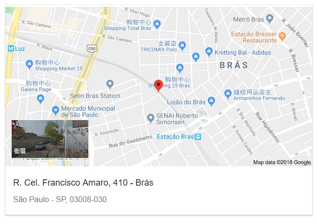 地址:R. Cel. Francisco Amaro, 410 - Brás São Paulo - SP, 03008-030