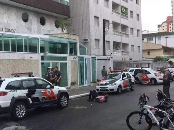 Um dos criminosos foi preso após pular de prédio em Praia Grande (SP), neste sábado (18) (Foto: Reprodução/Praia Grande Mil Grau)