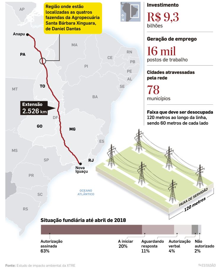 Segunda linha de transmissão da hidrelétrica, a cargo da chinesa State Grid, tem prazo de conclusão previsto para dezembro de 2019 Foto: Marcelo Min