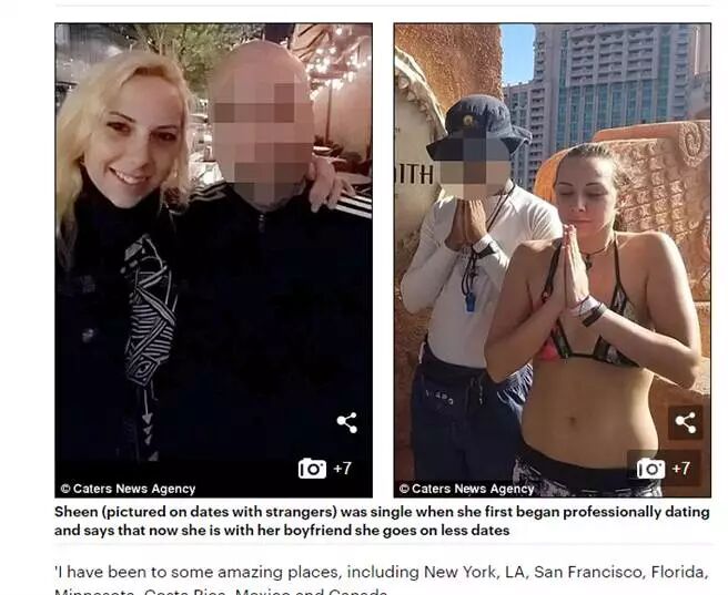 根据《每日邮报》报导,29岁希恩(Sheen Hunter)来自西雅图,是一名小演员,两年前她单身时,会透过网路认识陌生男子,与对方进行「付费式约会」,收取美元300以上的价格,而且都至高级餐厅消费。希恩表示,由于她的时间宝贵,因此用餐时间不会超过两小时。