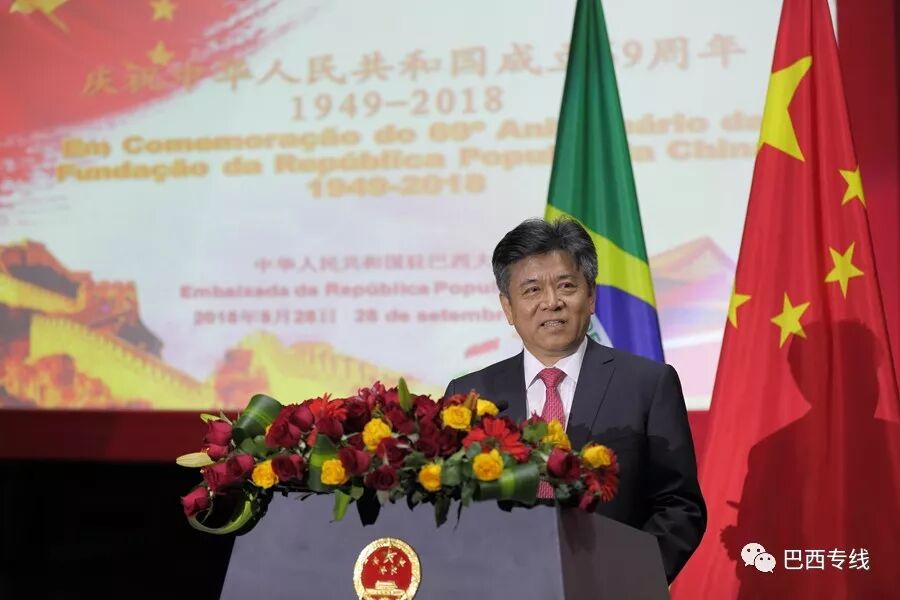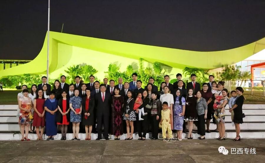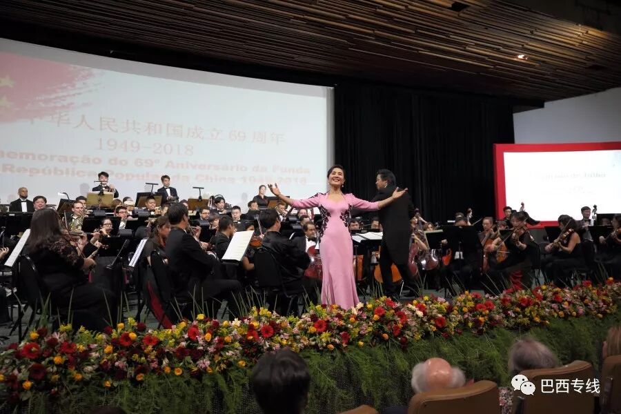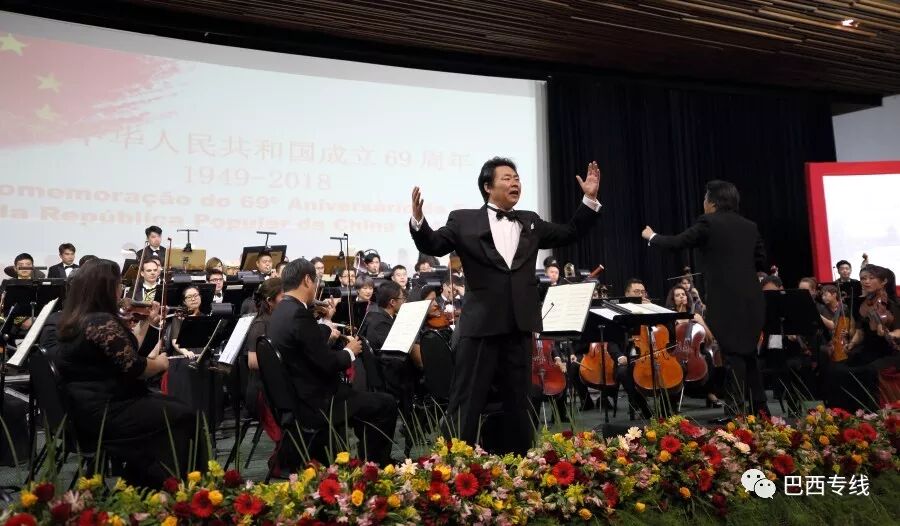 9月28日,驻巴西大使李金章和夫人黄敏慧在巴西陆军司令部佩德罗·卡尔蒙礼堂举行招待会,隆重庆祝中华人民共和国成立69周年。外披“中国红”、内映中巴国旗色的千人大礼堂座无虚席。巴西外交部副部长、巴西政府代表玛丽亚·巴罗斯,旅游部代部长阿尔贝托·阿尔维斯,外交部副部长埃斯蒂瓦莱蒂,外交部副部长莫朗,巴西陆军司令博阿斯上将,国防部部长代表维威鲁海军上将等巴政要、各界友好人士、各国驻巴使节以及中资机构、中巴媒体、留学生和华侨华人代表等1100多人出席并观看演出。巴西国会主席、参议长奥利维拉、众议长马亚、民主运动党主席茹卡、前总统科洛尔、前参议长卡列罗斯等发来贺信。
