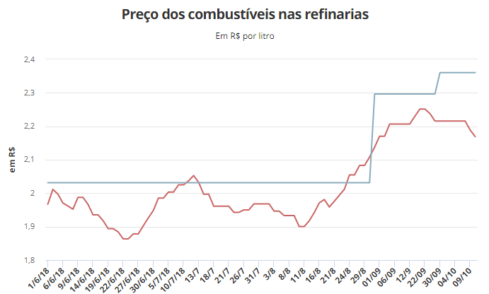 这是本周第二次下调油价。截至周二(9),炼油厂的油价已经下降1.23%。自9月28日以来,在石油公司采取的对冲政策(Hedge)下,价格保持稳定。 9月,巴西国家石油公司宣布了一项金融保护机制(称为对冲),将炼油定价机制调整为15日一调。