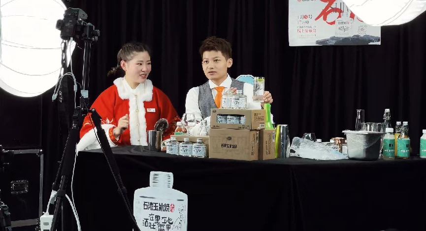 在今晚玉冰烧冰小酒IP款新品发布会上,还请来了专业调酒师用玉冰烧冰小酒现场调酒。白汤力、许你清欢、妃子醉茶、火烧云、霸气百香玉冰烧……调酒师为直播间的观众们展示了多种玉冰烧冰小酒的调制酒。