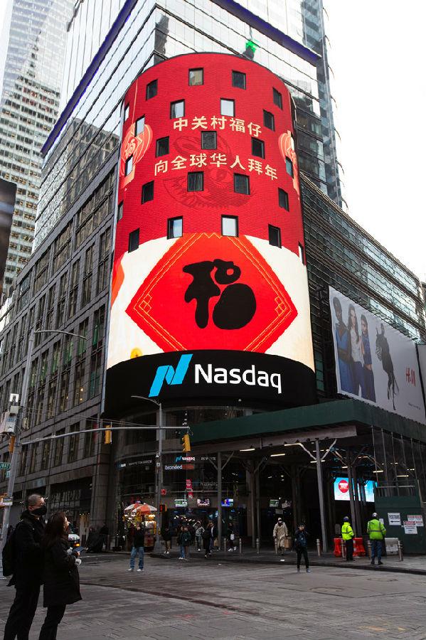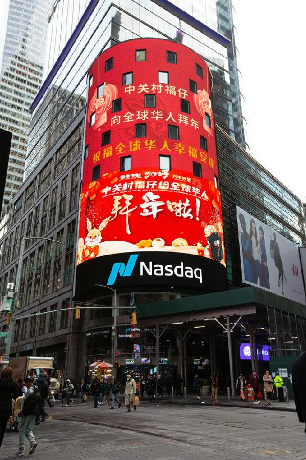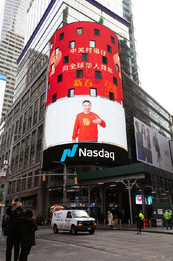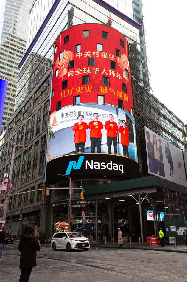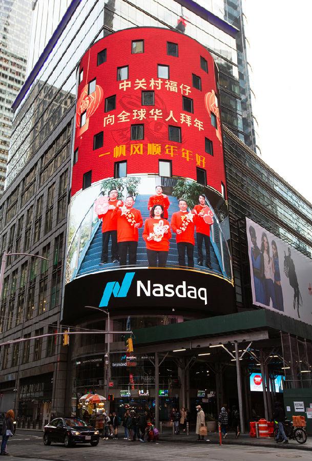 农历大年三十,由中关村福仔(广东)品牌管理有限公司拍摄制作的拜年广告“送福”,登陆纽约时代广场纳斯达克显示屏,向全球华人送去新春的祝福。