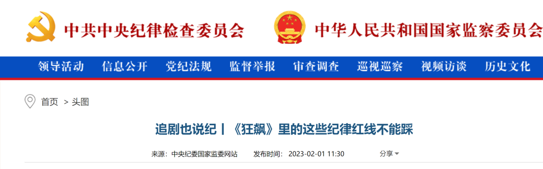 2月1日,中央纪委国家监委网站发文,列举《狂飙》中不能踩的纪律红线。一起看看↓↓↓中央纪委国家监委网站截图
