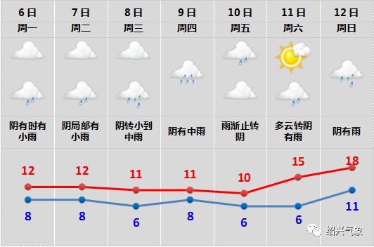 未来一段时间绍兴仍将处在阴雨天气当中,