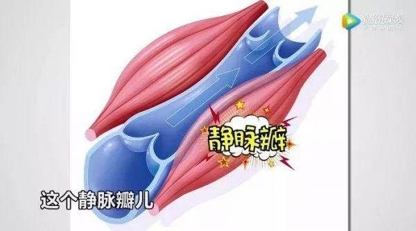 腿部的静脉中有很多“静脉瓣”,像是很多单向阀门,帮助静脉血液回流到心脏,防止血液倒流。
