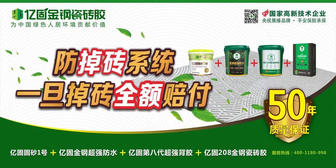 公司主打推出的“0空鼓 50年防掉”系统也加入了亿固208金钢瓷砖胶,设计为“亿固固砂1号+亿固金钢超强防水+亿固第八代超强背胶+亿固208金钢瓷砖胶”的黄金组合,打造出完善的防掉砖产品系统。