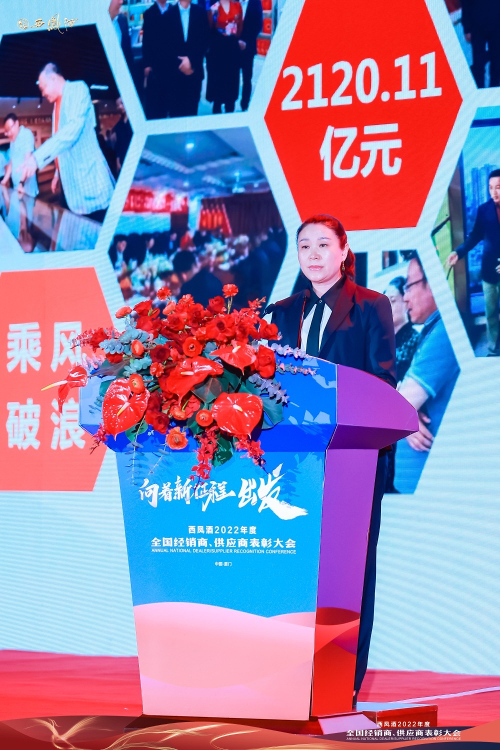 2月19日,以“向着新征程出发”为主题的西凤酒2022年度全国经销商、供应商表彰大会在“鹭岛”厦门隆重召开。大会期间,陕西西凤酒股份有限公司副总经理、营销管理公司总经理周艳花发布《西凤酒2022年营销工作总结暨2023年营销工作规划》。