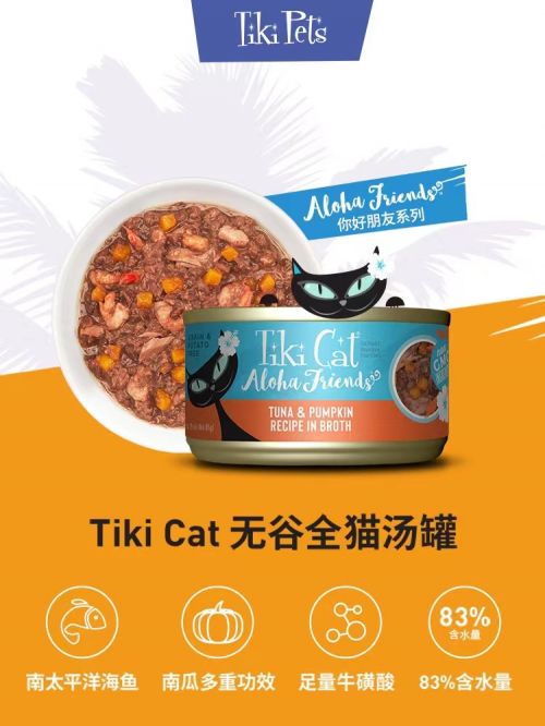 Tiki Cat奇迹猫在猫罐的加工过程中,秉承微加工理念,原切的大块材料清晰可见,满足猫科动物口口吃肉的原始需求,而且看得到的原材料也让各位宠物主人更加放心。同时猫罐中的汤汁充足,鲜美可口,也能成为很多猫咪补充水分的最佳来源。