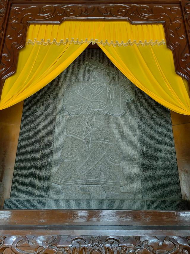 “人文初祖”大殿。受访单位供图过了碑亭,便是“人文初祖”大殿,这里曾是轩辕庙中祭祀黄帝的正殿,正中供奉着轩辕黄帝的全身线性浮雕像。此像以山东武梁祠东汉画像石为蓝本,采用墨玉雕刻而成,高3.9米,重11吨。像中的黄帝步履向东,左手前指,又回首西望,神情专注,衣冠简朴,仿佛正率领远古先民“辟地黄河及长江,大刀霍霍定中原”。