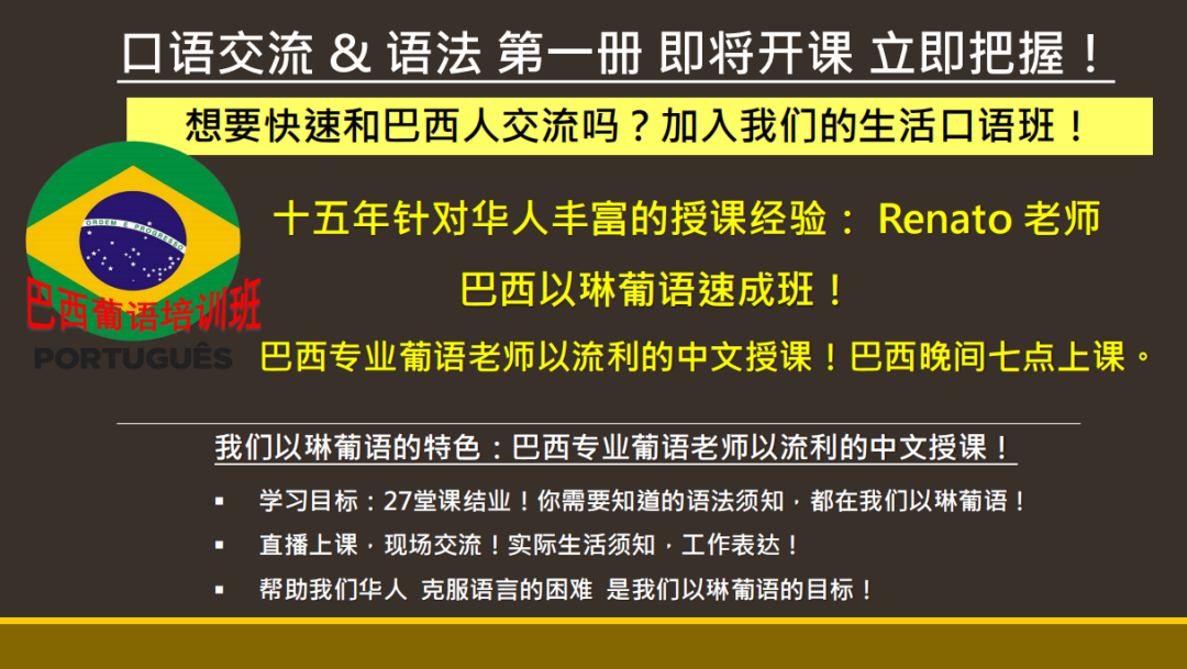 巴葡基础发音&商业口语交流开课!*专业老师与教材让你更快达标!