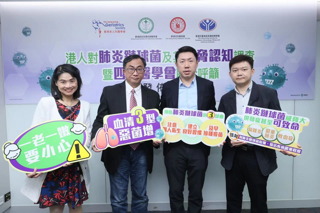 香港老人科医学会、香港感染及传染病医学会、香港儿科医学会、香港儿童免疫过敏及传染病学会联合委托香港民意研究所,于今年3月进行网上调查,成功访问3600名18岁或以上成年人,男女参半,其中分别2%及32%与2岁以下婴幼儿及65岁以上长者同住。在“后新冠时代”,四种常见呼吸道感染包括新冠肺炎、流感、肺炎链球菌感染、百日咳之中,市民最担心的仍然是新冠肺炎;至于最不担心的感染,首位是百日咳,第二位便是肺炎链球菌感染,显示患者对肺炎链球菌感染危机意识不足。