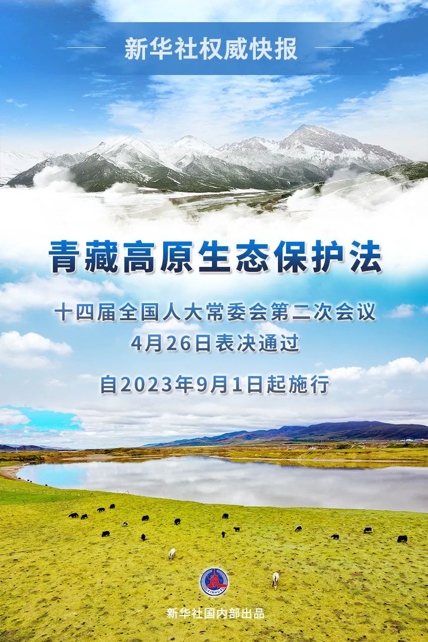 4月26日,十四届全国人大常委会第二次会议表决通过青藏高原生态保护法。法律自2023年9月1日起施行。