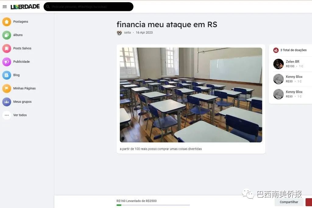 巴西一社交平台出现了资助校园袭击的众筹项目。